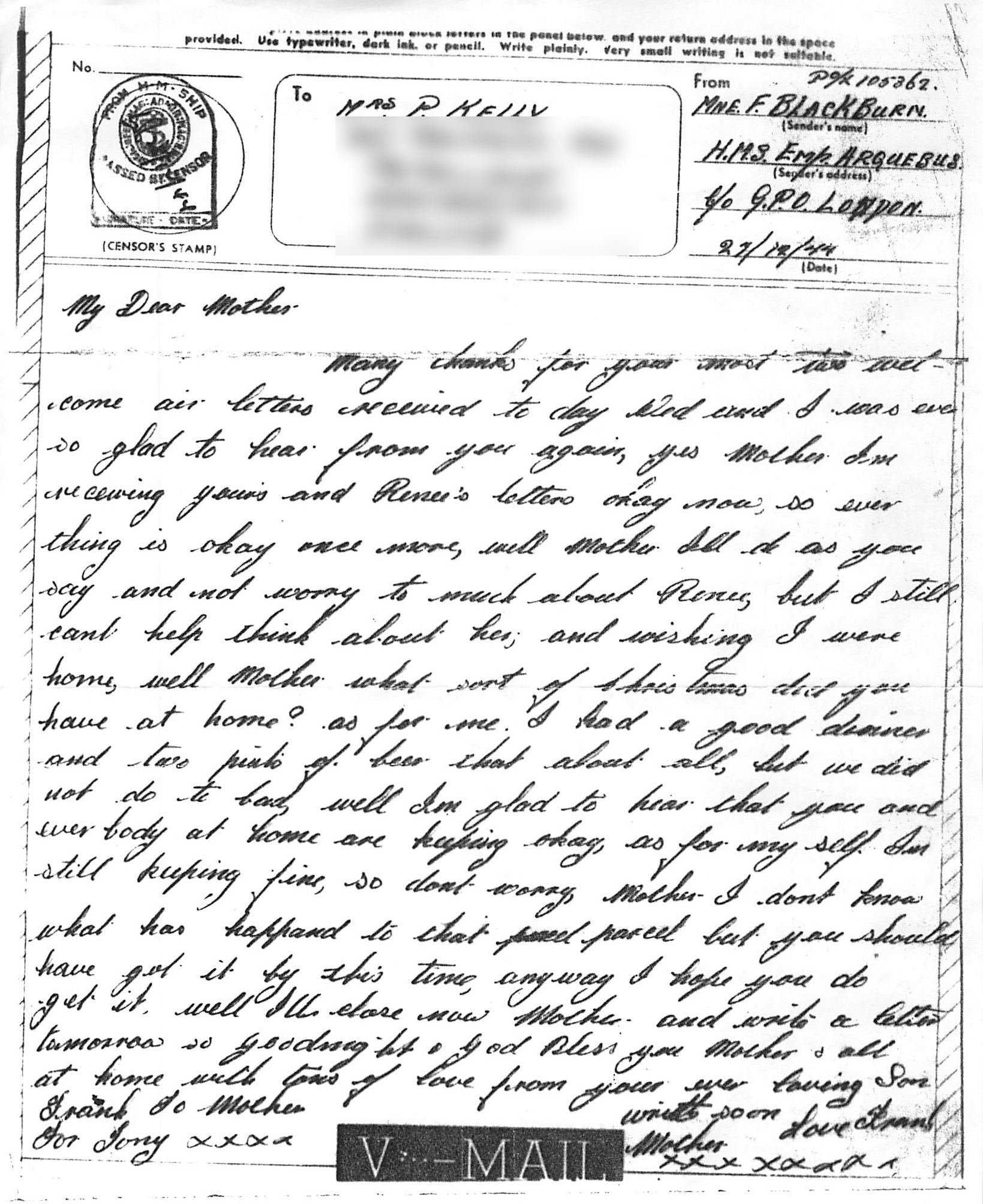 Frank was in the Pacific at the time he wrote the letter, he was a Royal Marine on Force X as part of the Pacific Fleet.