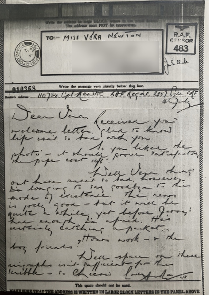 Arthur (1913-1972) served in the RAF in Italy. Vera (1918-2020) was his sister. They had a close relationship.