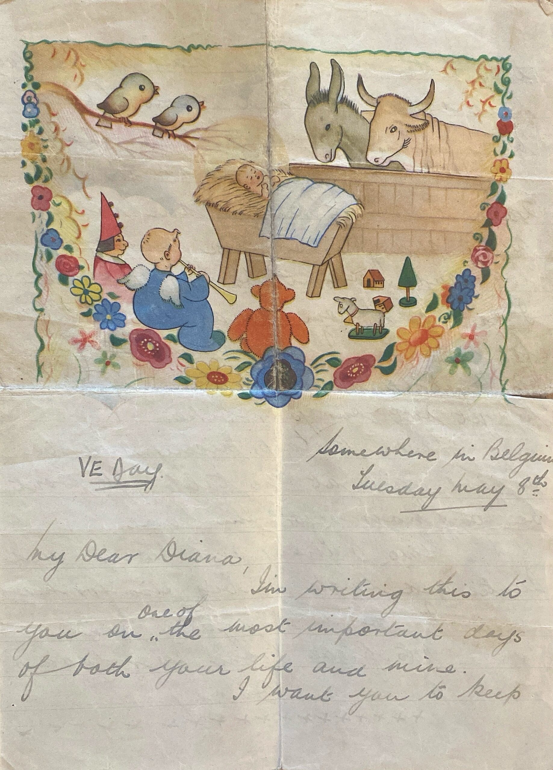 When Diana was just six years old, her father wrote her this letter to explain the significance of VE Day. In it, he asked her to keep it safe and one day share it with her own children.