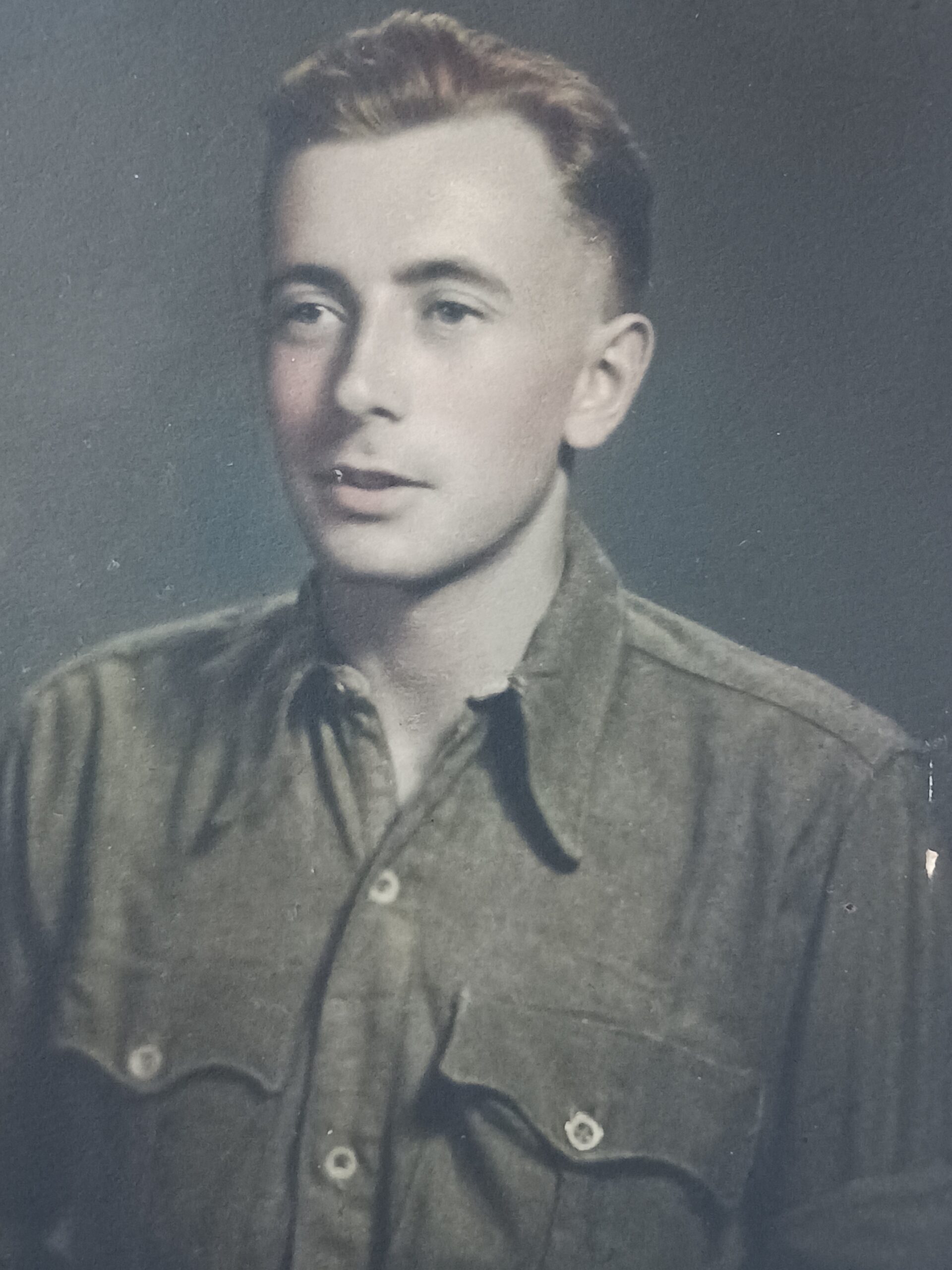 The photo at the top of this page is of my father lying on his cot reading a magazine in a warehouse billet in Italy. By then a seasoned soldier, his Thompson submachine gun is leaning against the wall close at hand. His first letter on departure was sent by a young, inexperienced boy.
