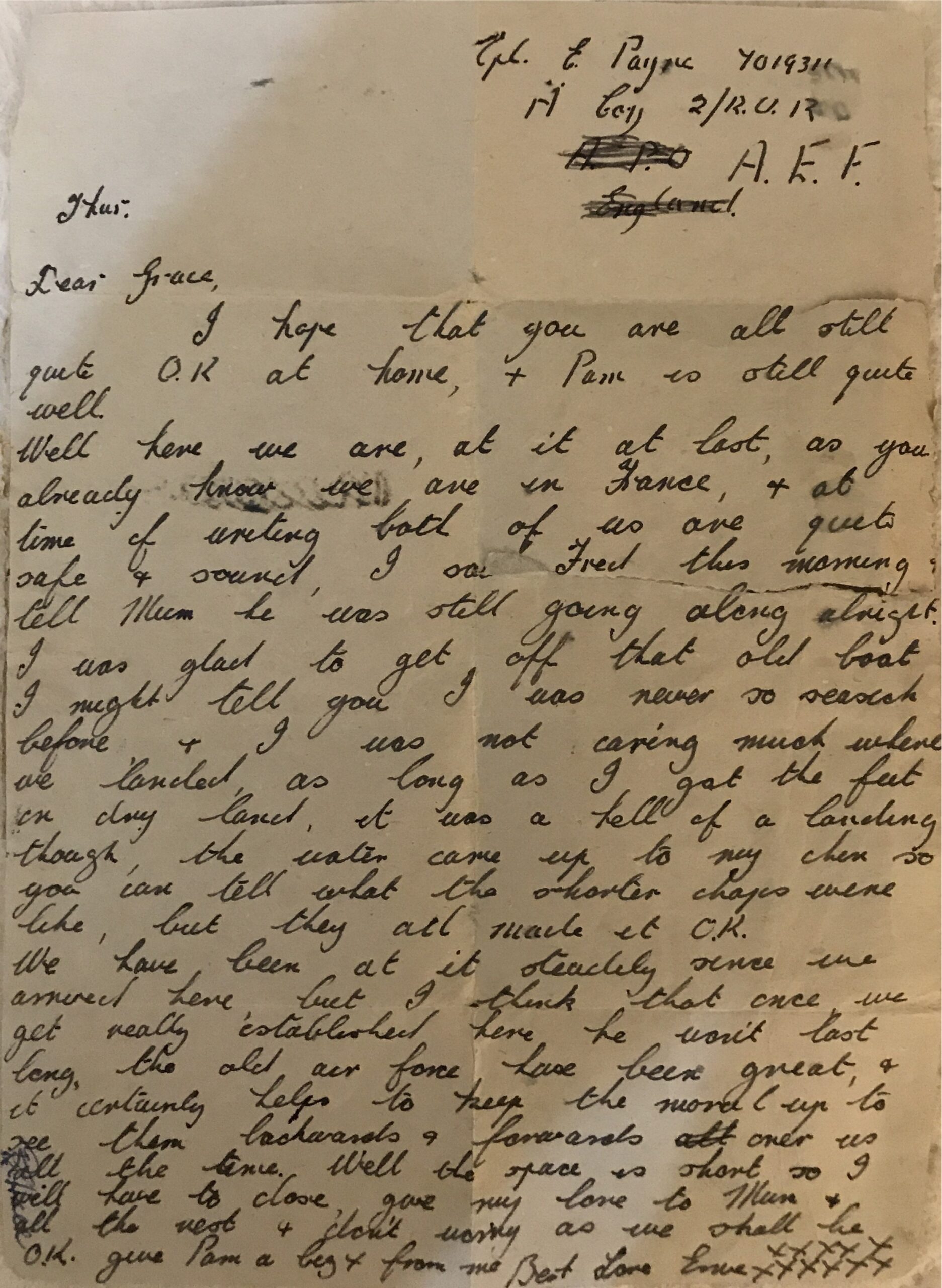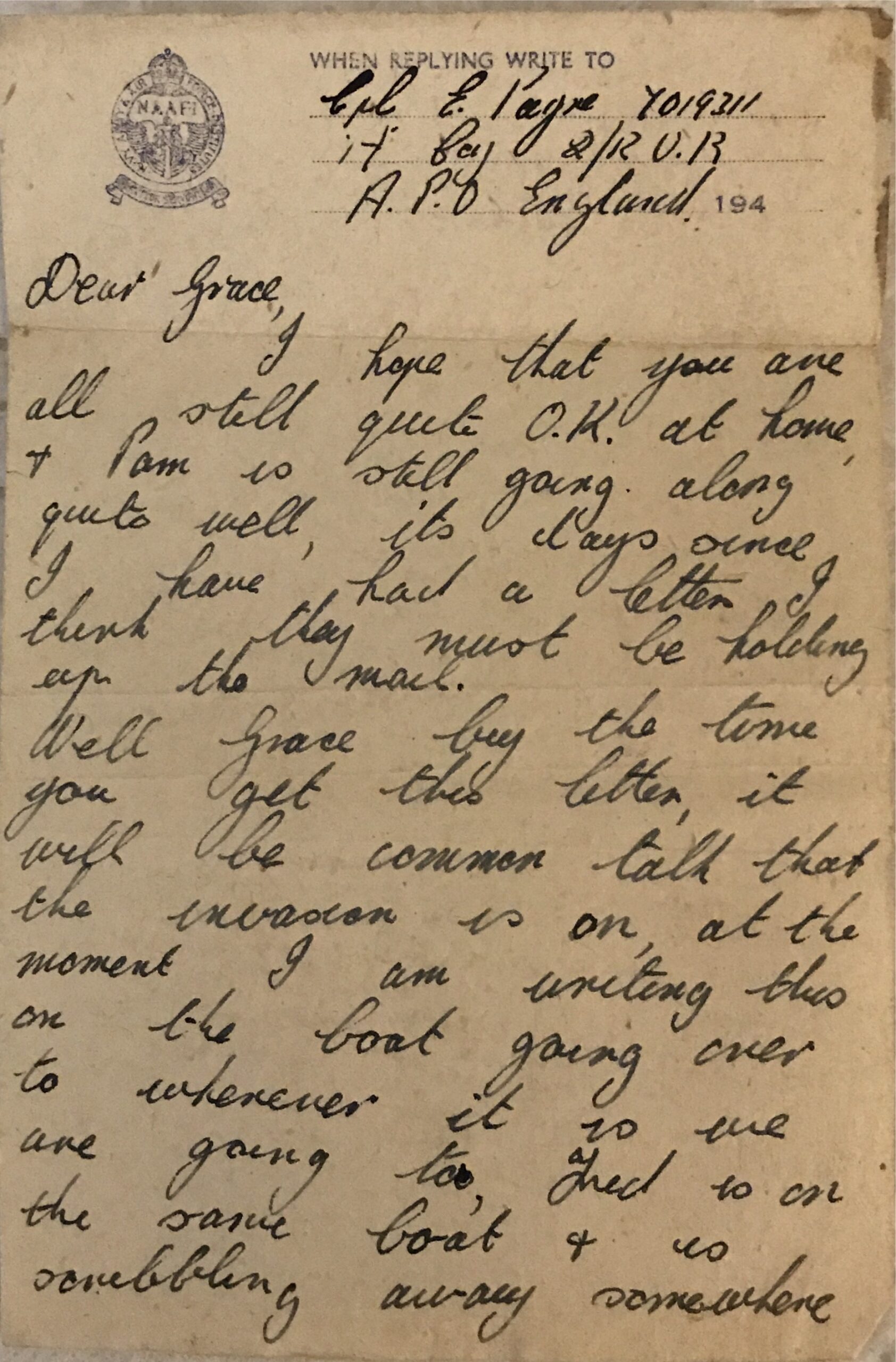 Ernest Payne to his wife Grace from the D-Day landings