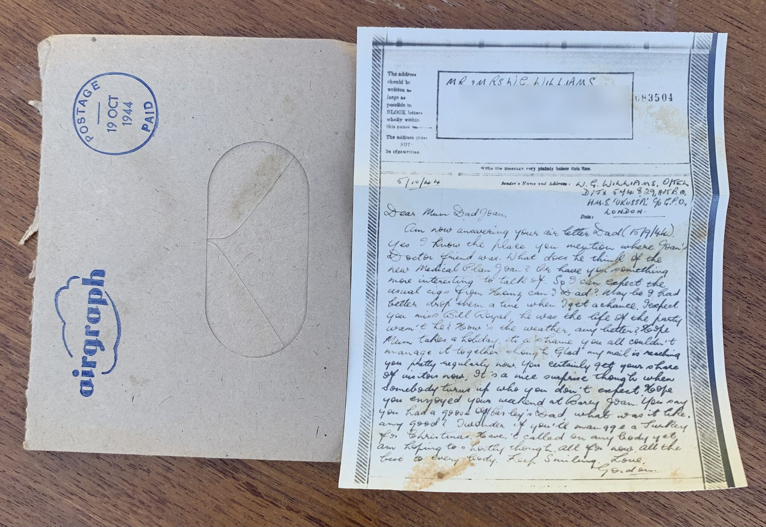 Some years ago I bought a packet of letters from Mrs Williams to her son Gordon who was serving with the Royal Navy in India, with replies from Gordon.