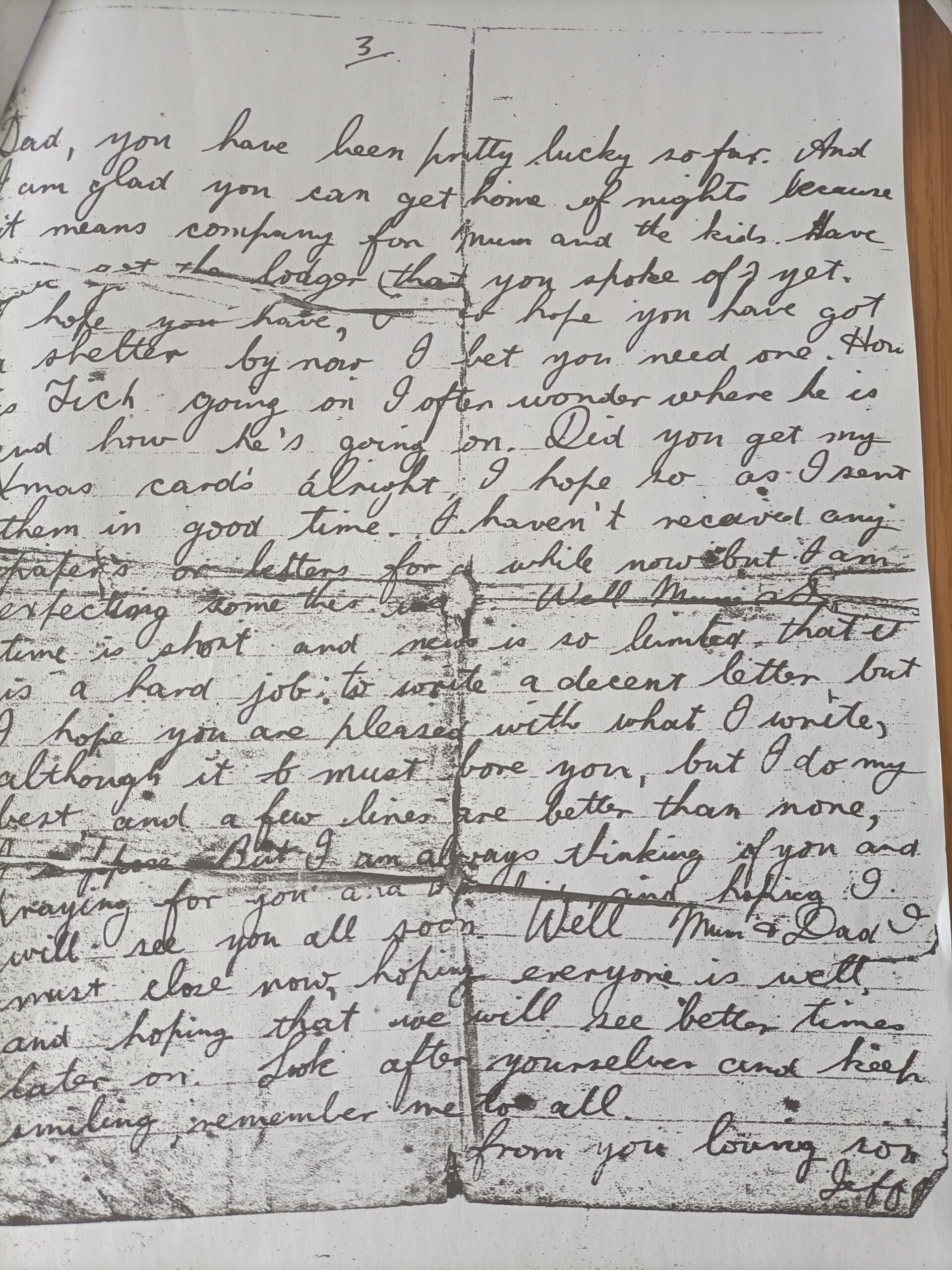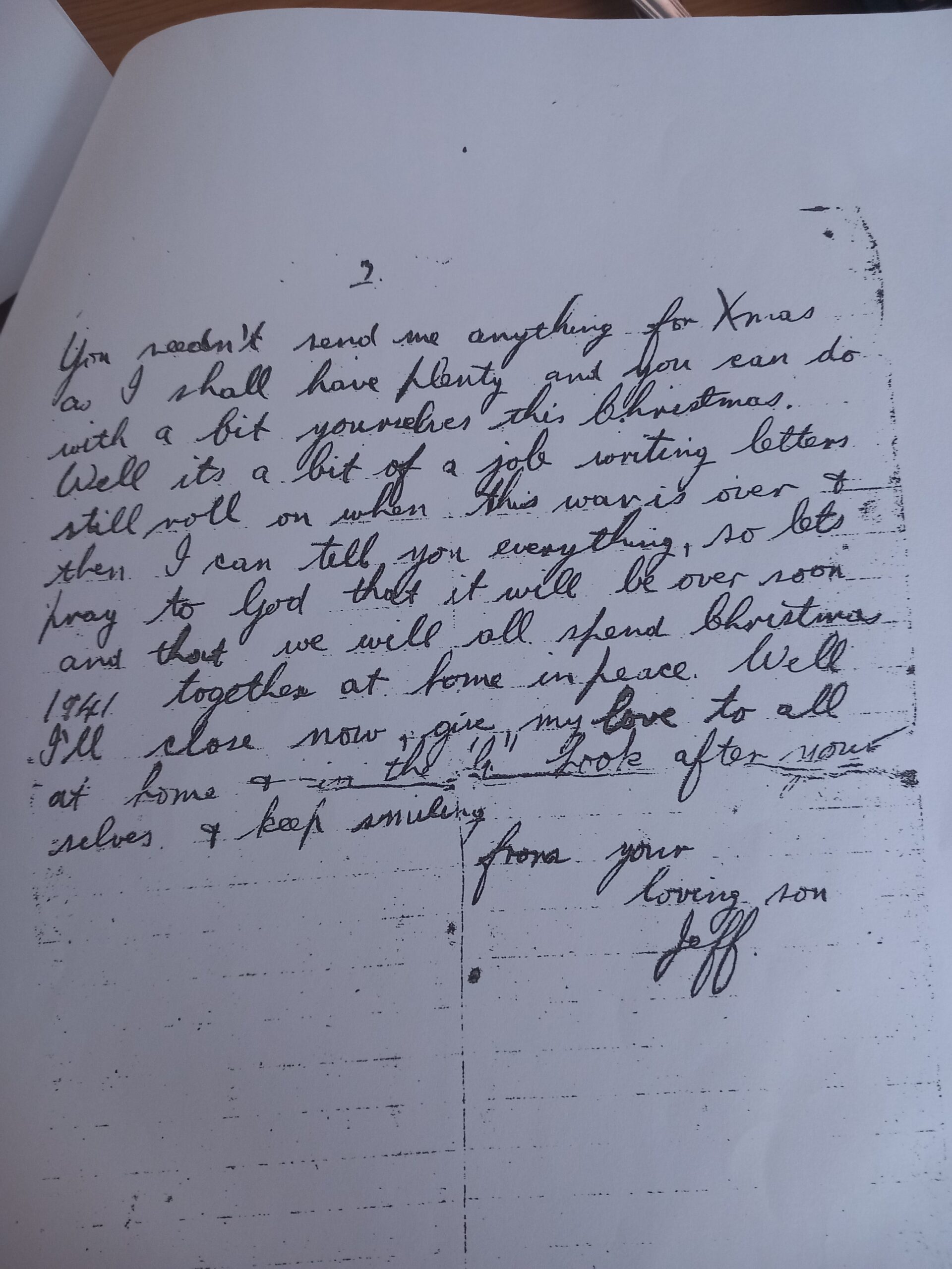 These are letters from my uncle Jeff, who volunteered to join the navy at the age of 19. He was eventually killed in the battle of Crete, going down with his ship, HMS Gloucester in 1941. The ship was sunk by German planes.