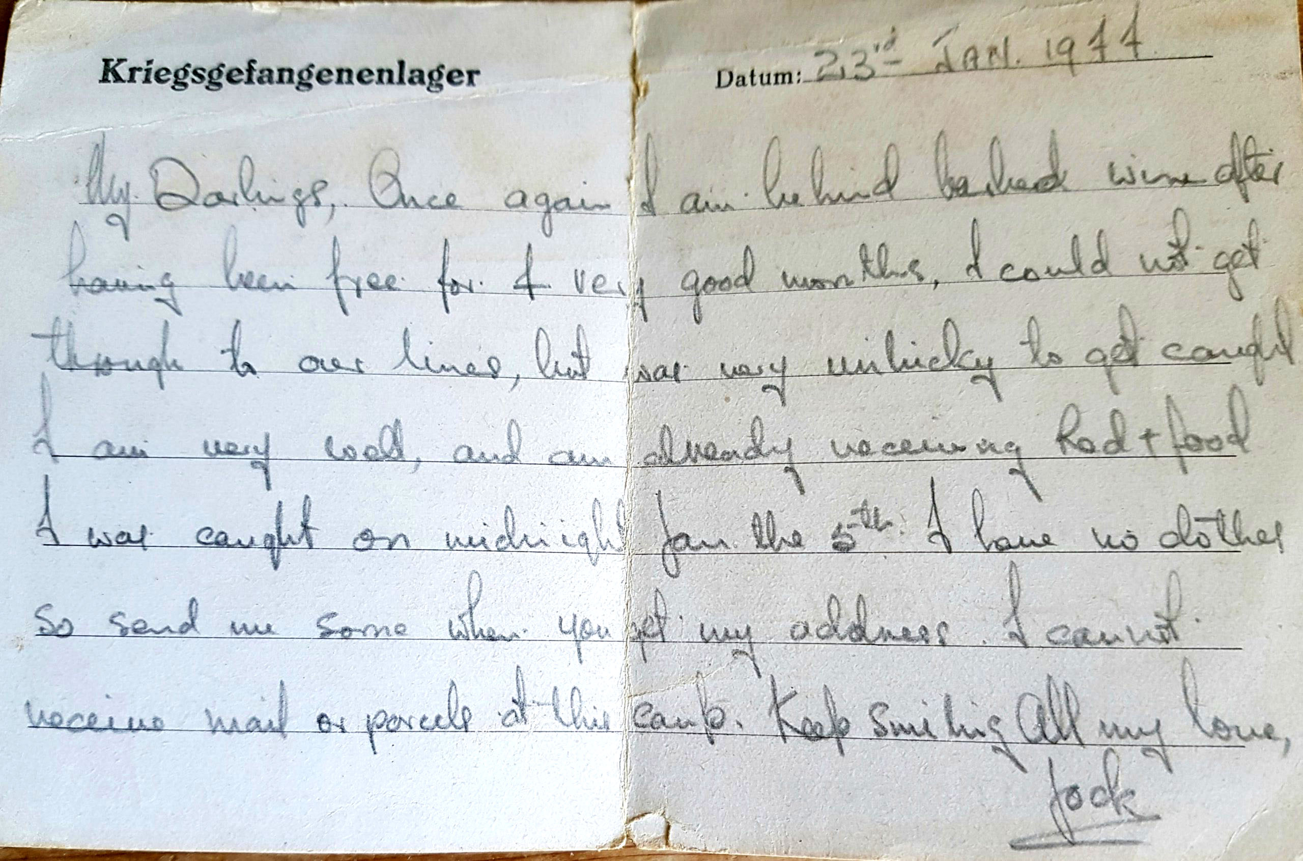 Jock sent this postcard to his parents from a Prisoner of War camp in Germany.