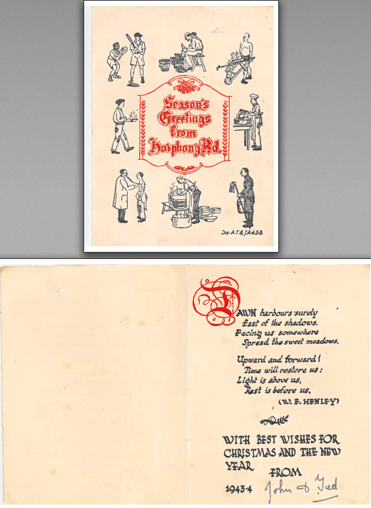 However, there are a couple of Christmas cards printed by my grandfather in prison camp and sent to my grandmother and father.