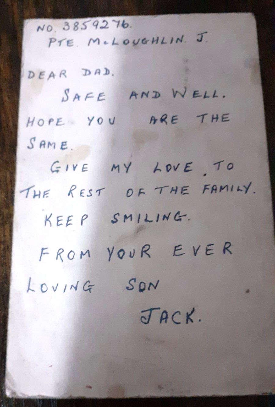 The letter was left to my father following his own father’s death, then left to me. It is from my dad’s brother who was a Japanese POW on the Burmese railway. He was always referred to by my Dad as our Jack.