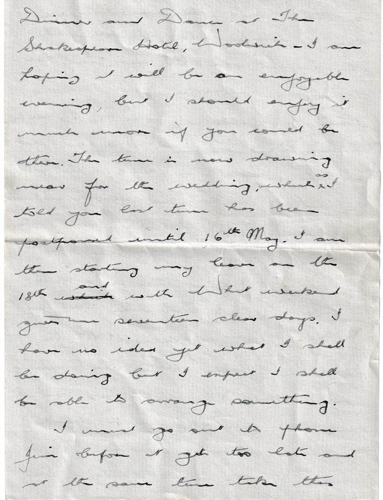 My mother Ivy was in the Wrens and received the letter at her parent’s home in Northern Ireland.  The letter had been inspected by the Censor.  This was one of over 100 letters from my father carefully filed by my mother.