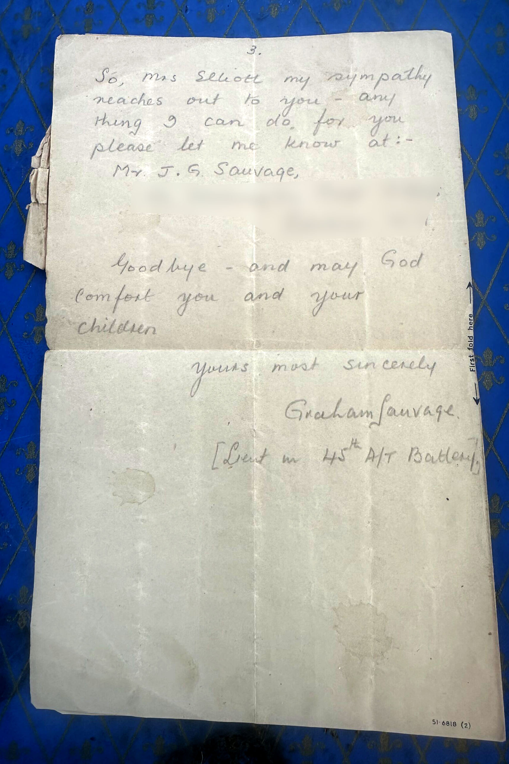 I’ve had the letter since my mother passed away and she had it from when her mother passed. Although I didn’t know my grandfather, I’m humbled that a ranking officer took the time to write to my grandmother. What a kind gesture.