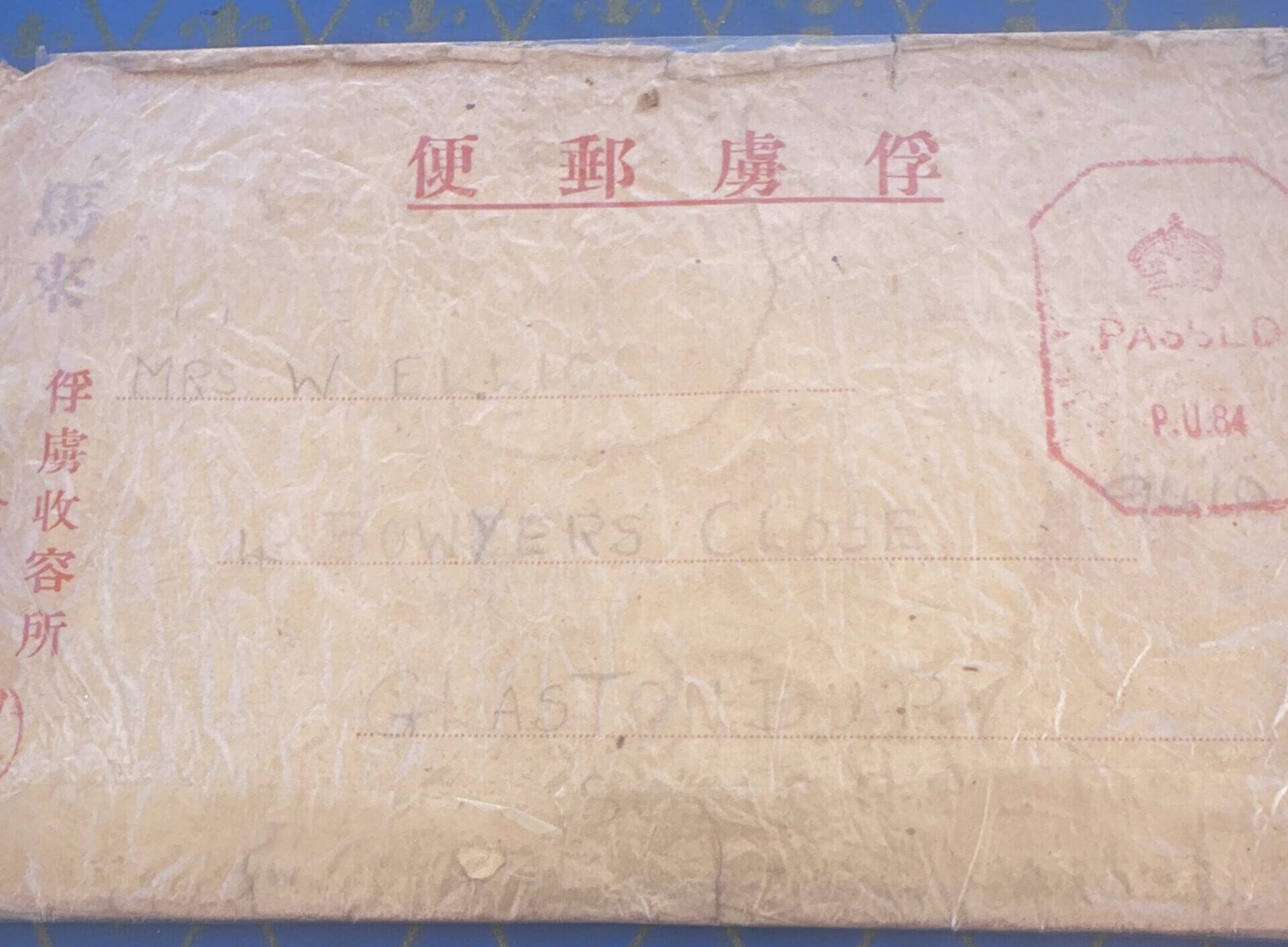I also have a letter from my grandfather Wilf to his wife and children (one of whom was my mother). He’s wishing them all a happy Christmas. The envelope has Japanese stamps on it. I can’t make out the date. He was a POW in Singapore.