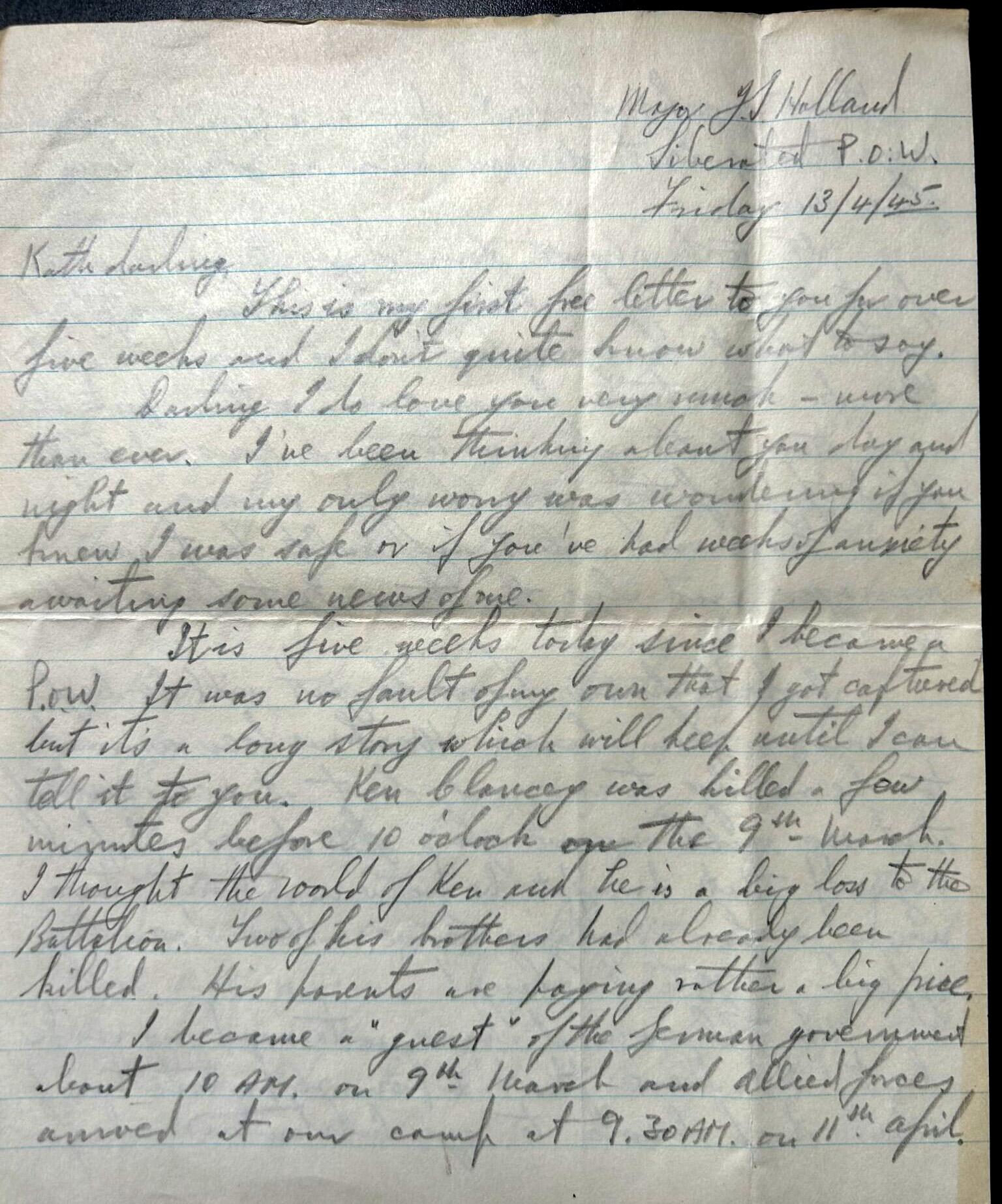 Major J S Holland to his wife Kathleen