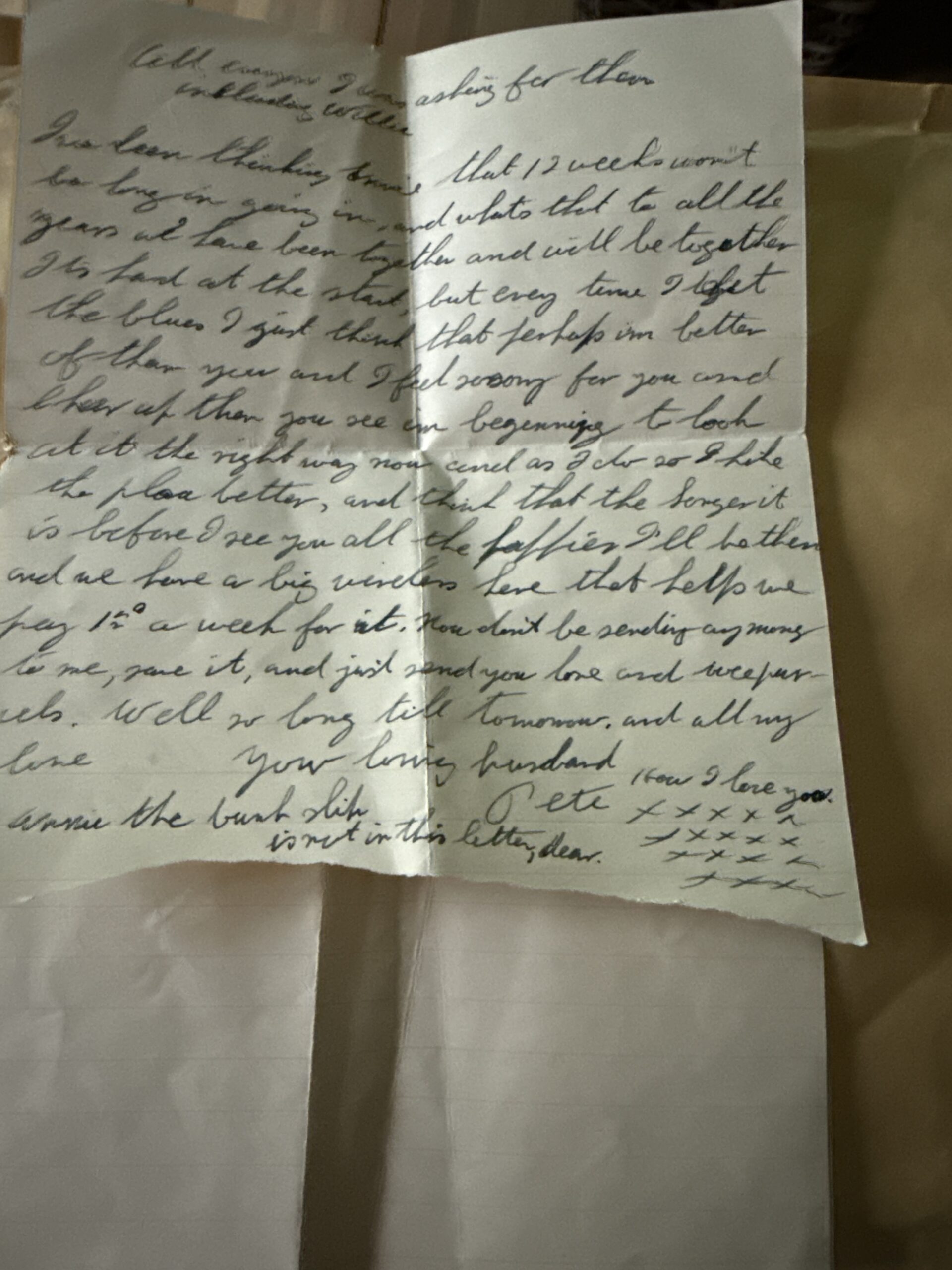 The letter is written from husband to wife during his training for the RAF (A Squadron during WW2), expressing his love and concern for his wife and children of which one had been born and he hadn’t seen.