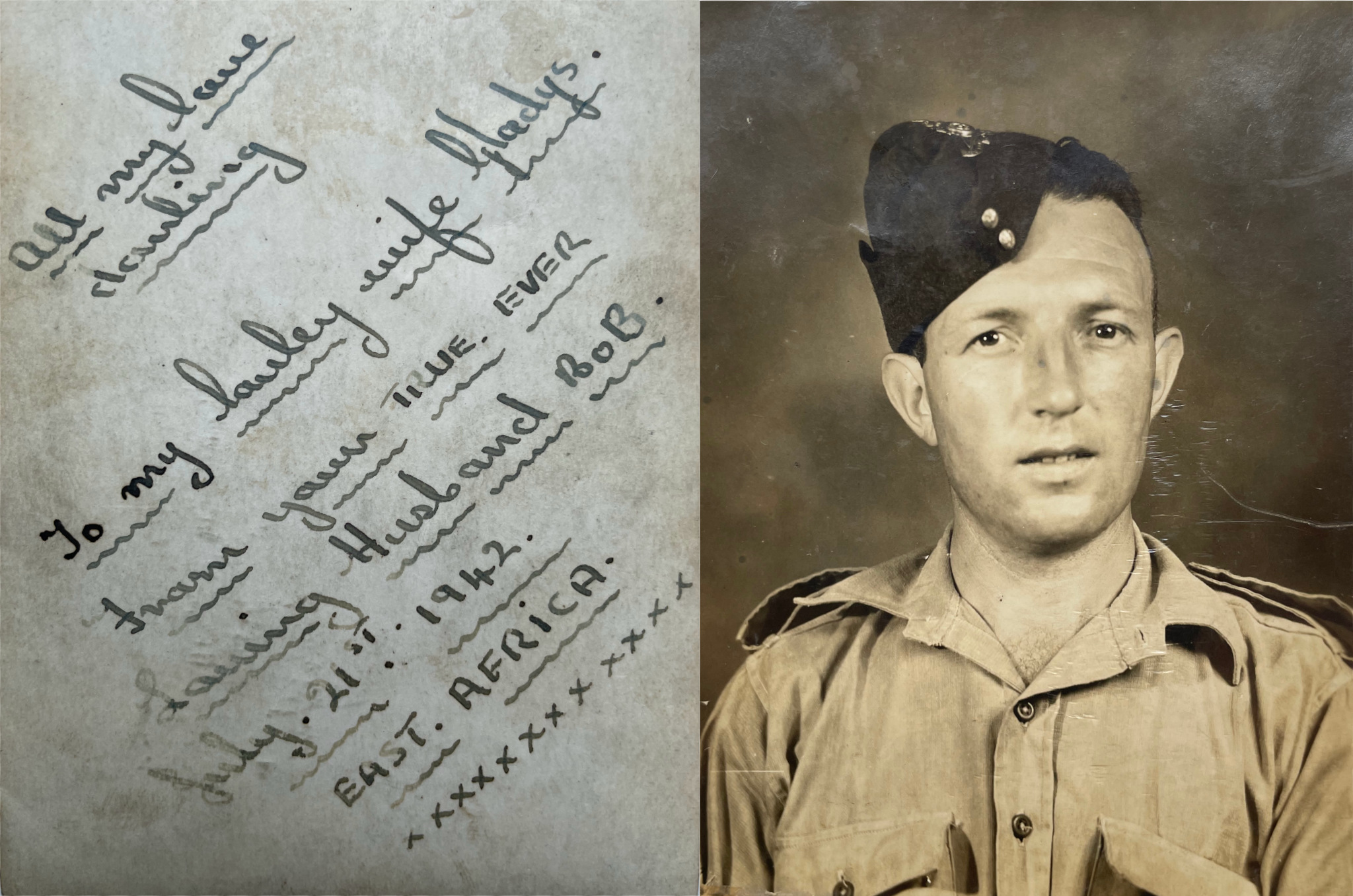 This is a photograph with a note on the back, which has been handed down to me. It was written by my Grandfather, Robert Jones, who served in Mombasa, Kenya during WWII. It was a note for my Grandmother, Gladys.