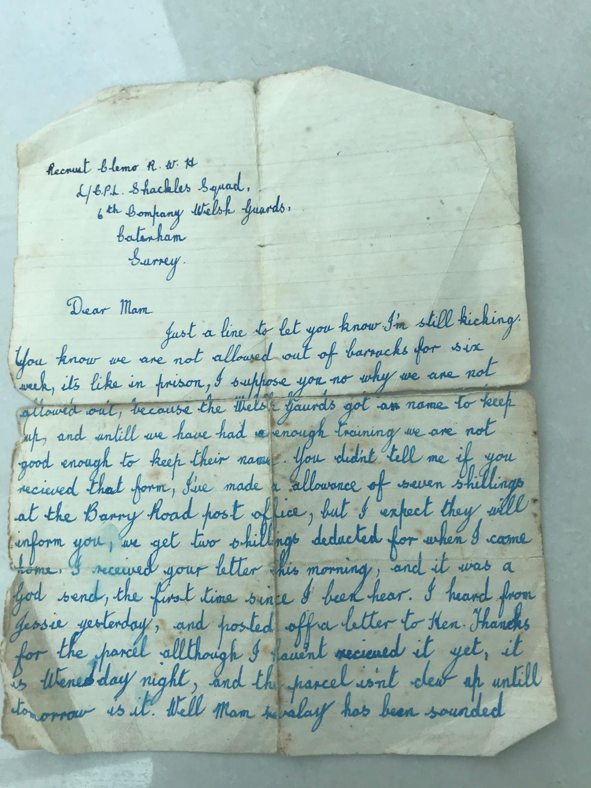 The letter is from her eldest son Roy when he was in Caterham, Surrey, sent to her in Barry, Vale of Glamorgan, Wales.