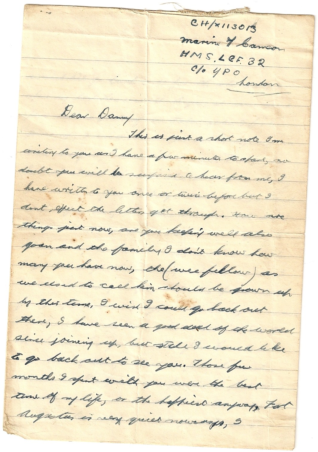 Where he was when the letter was sent us not known, but LCF 32 eventually sank in port due to unrepairable shell holes following Walcheren.