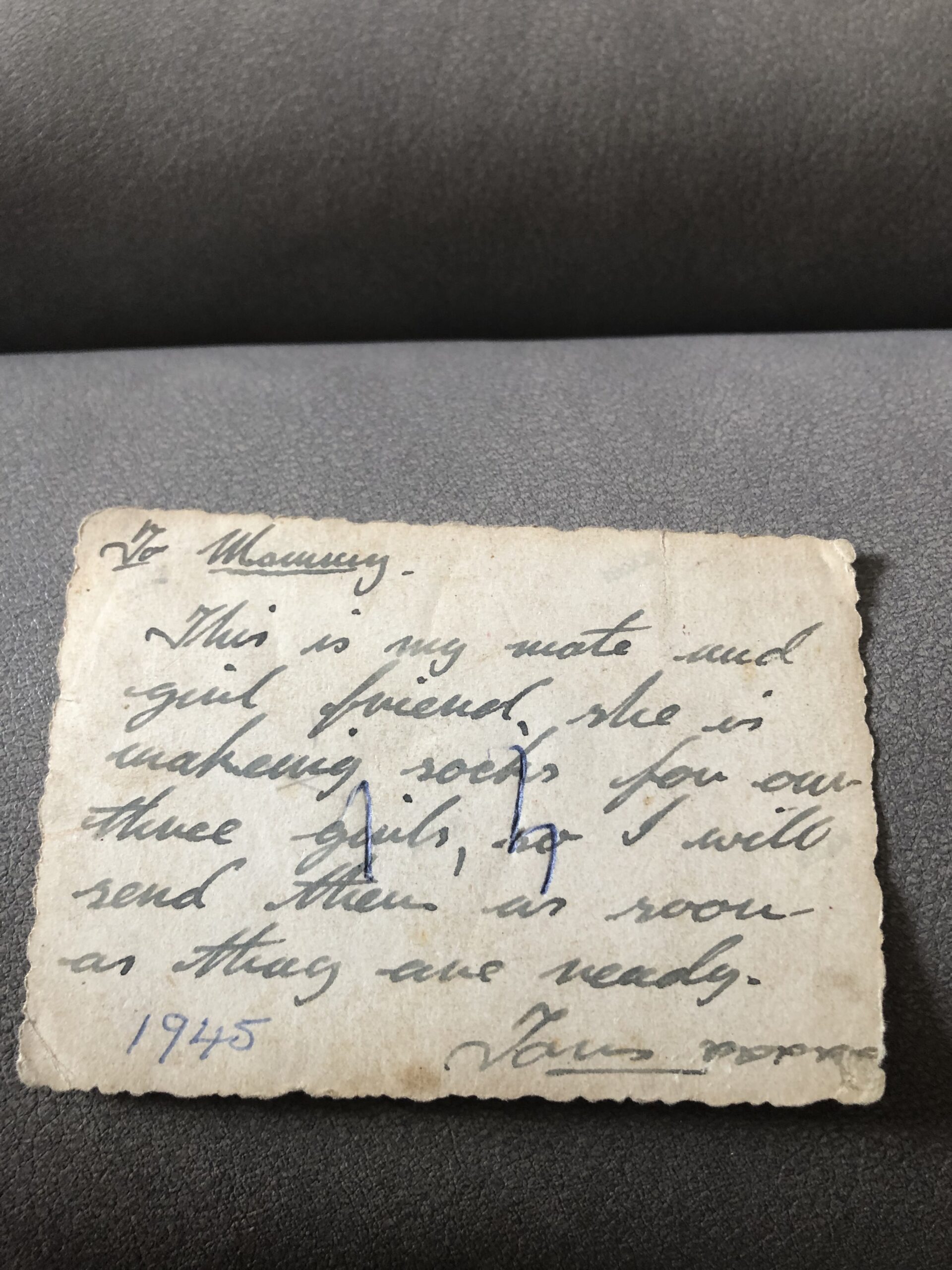 They are photographs with messages wrote on the back. I found them when I was clearing my mother’s house after she had died. I had never seen them before.