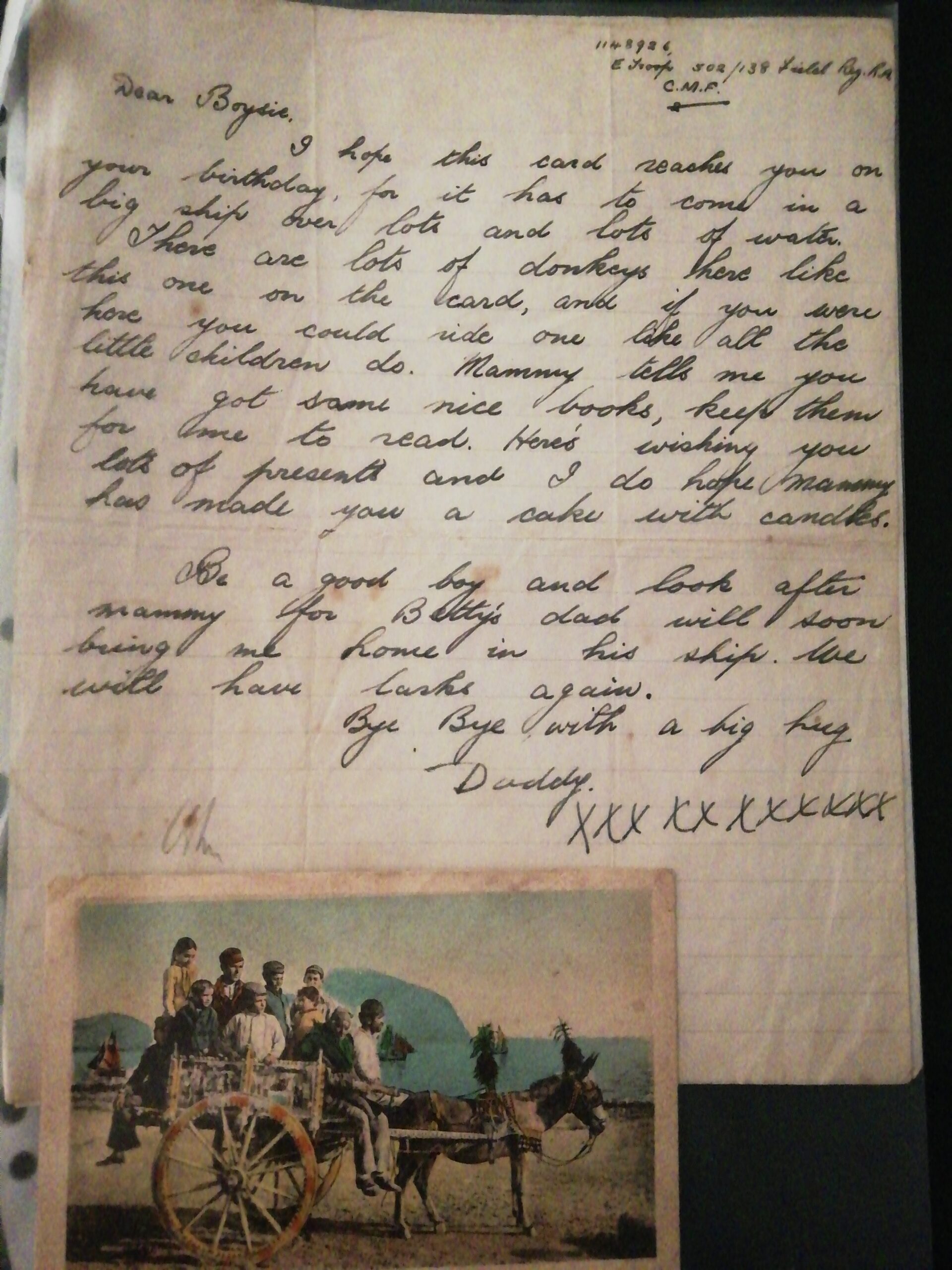 He treasured this last letter and postcard from his father for over 70 years.