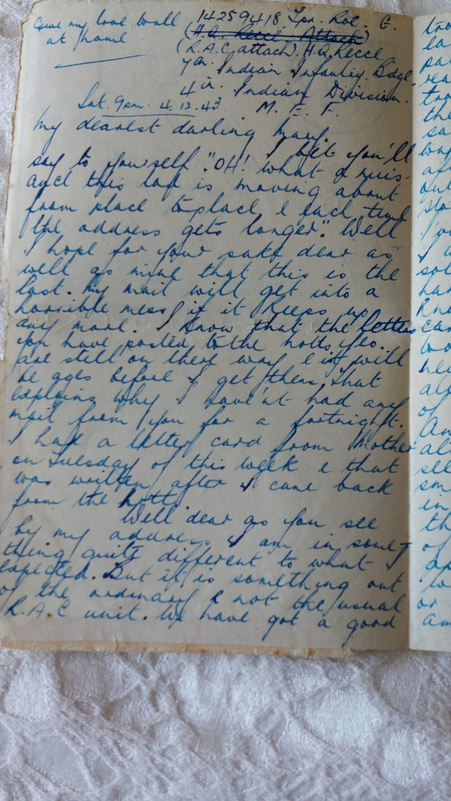 This letter written on 4th December 1943 gives a tiny snap shot of life in Cairo, Egypt before Christmas.