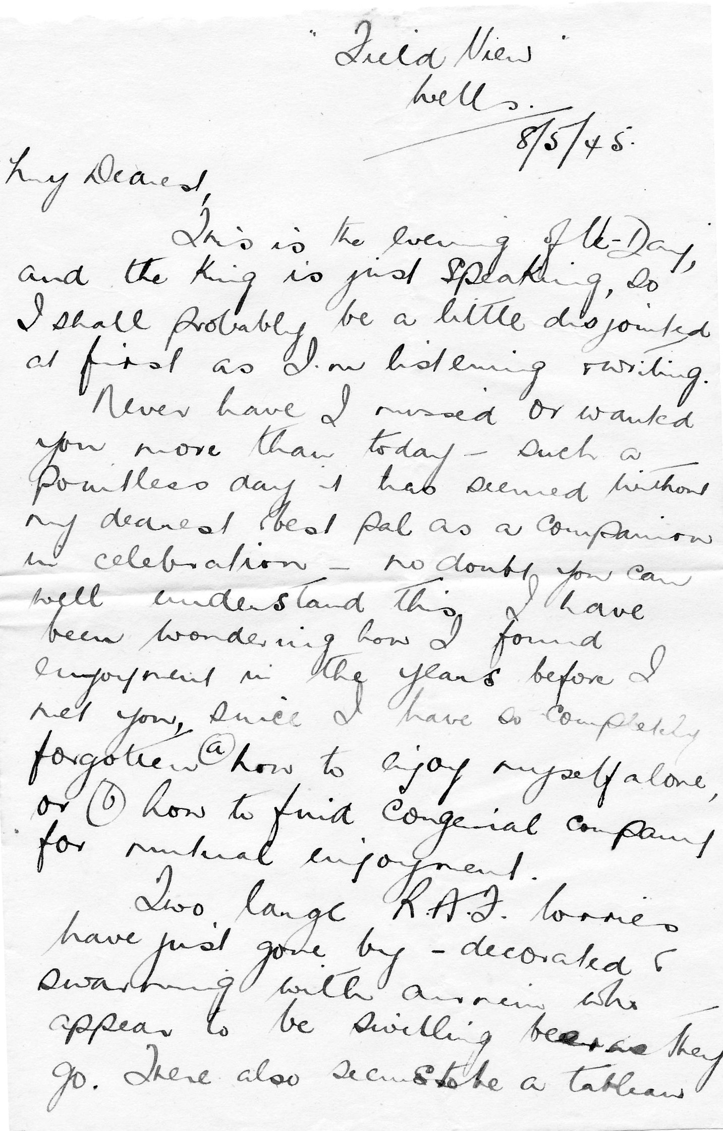 On VE Day, Vera wrote another of the many letters that she had written to Doug over the war years and as luck would have it, Doug kept it.