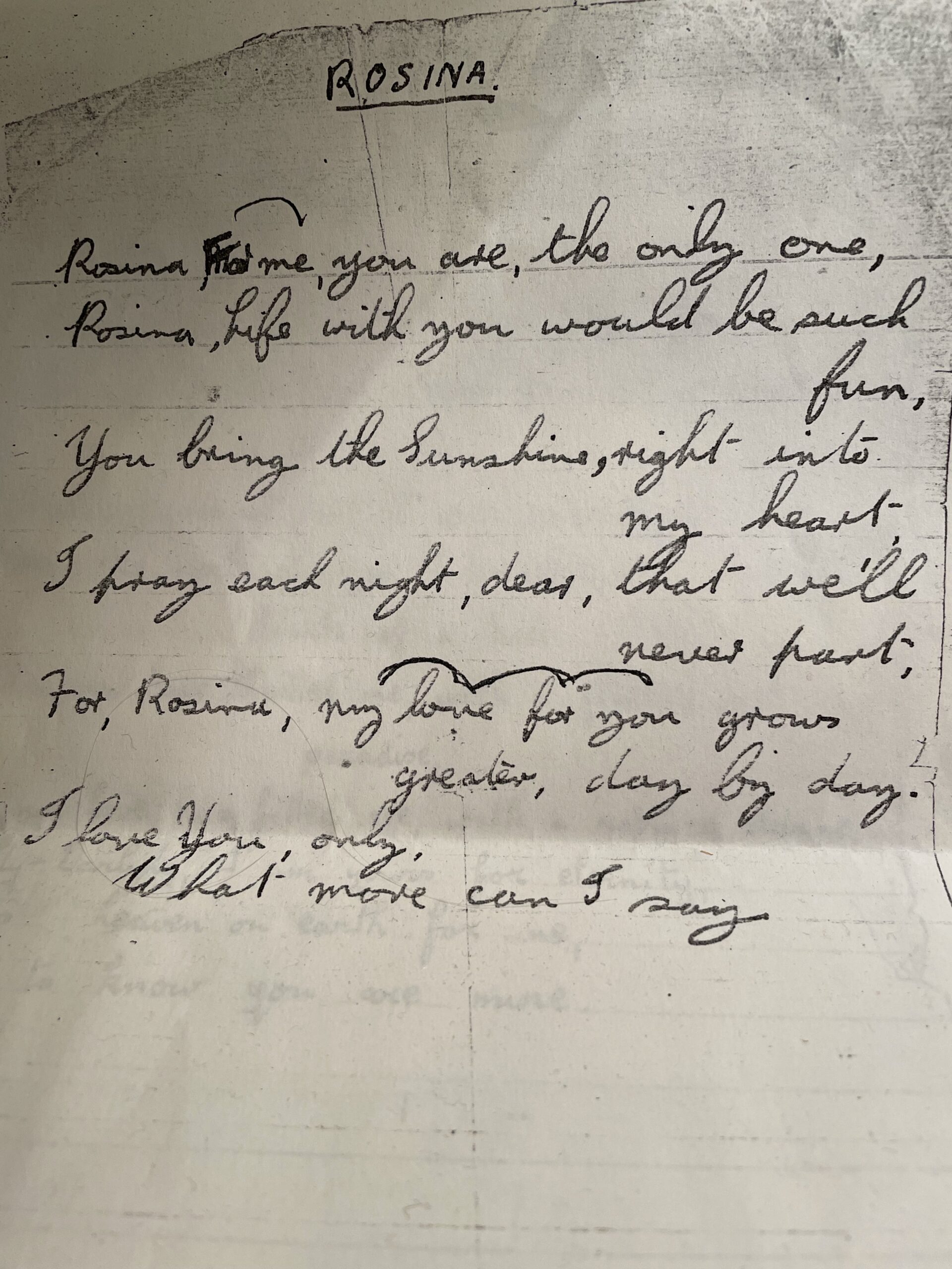 Rosina is my grandmother. She had an American fiancé that died during the war in Italy on 4 June 1944, as part of X Troop. He was shot and you can see the bullet holes penetrating the paper which would have been in his pocket. He was buried at Paliano.