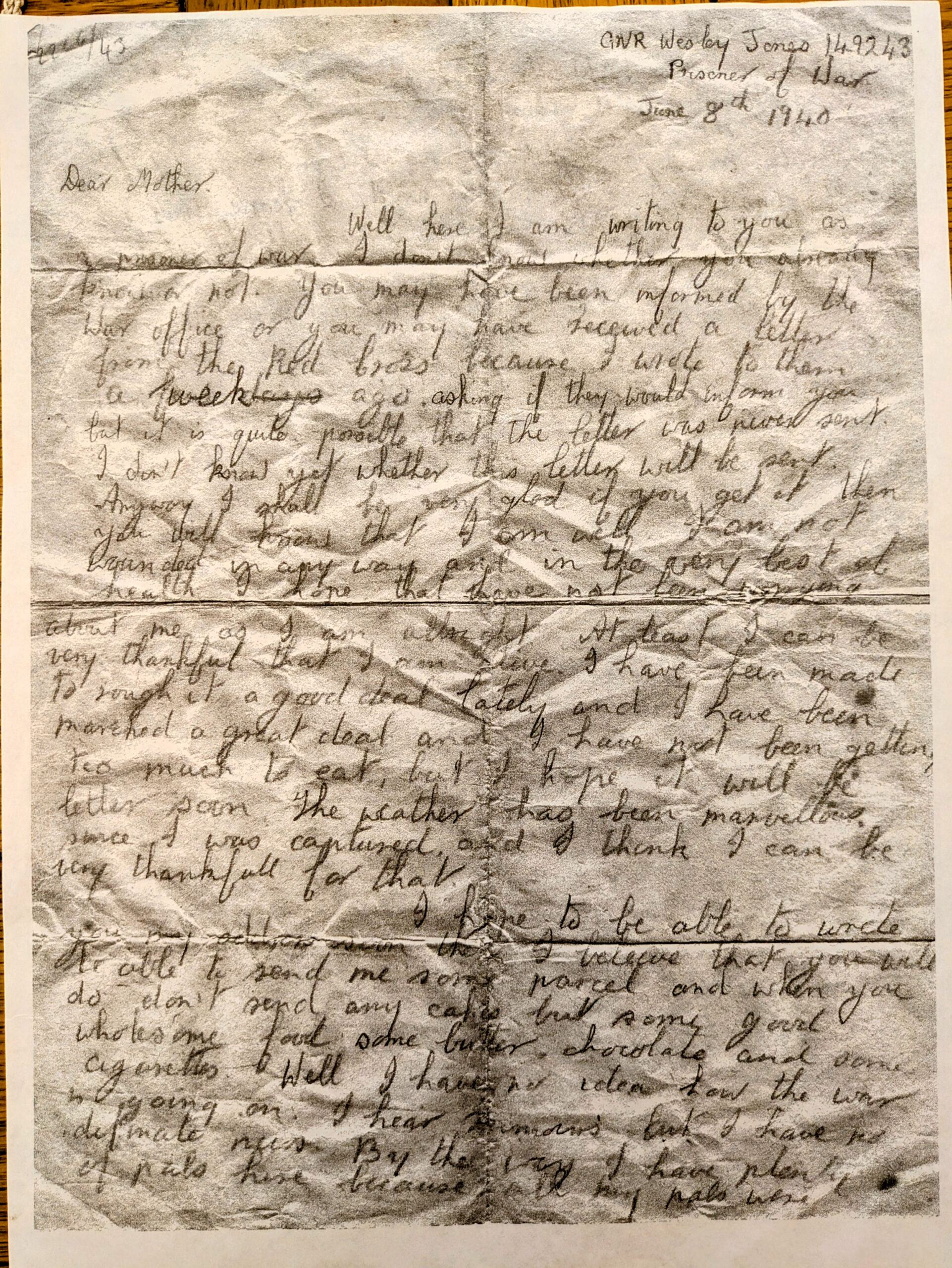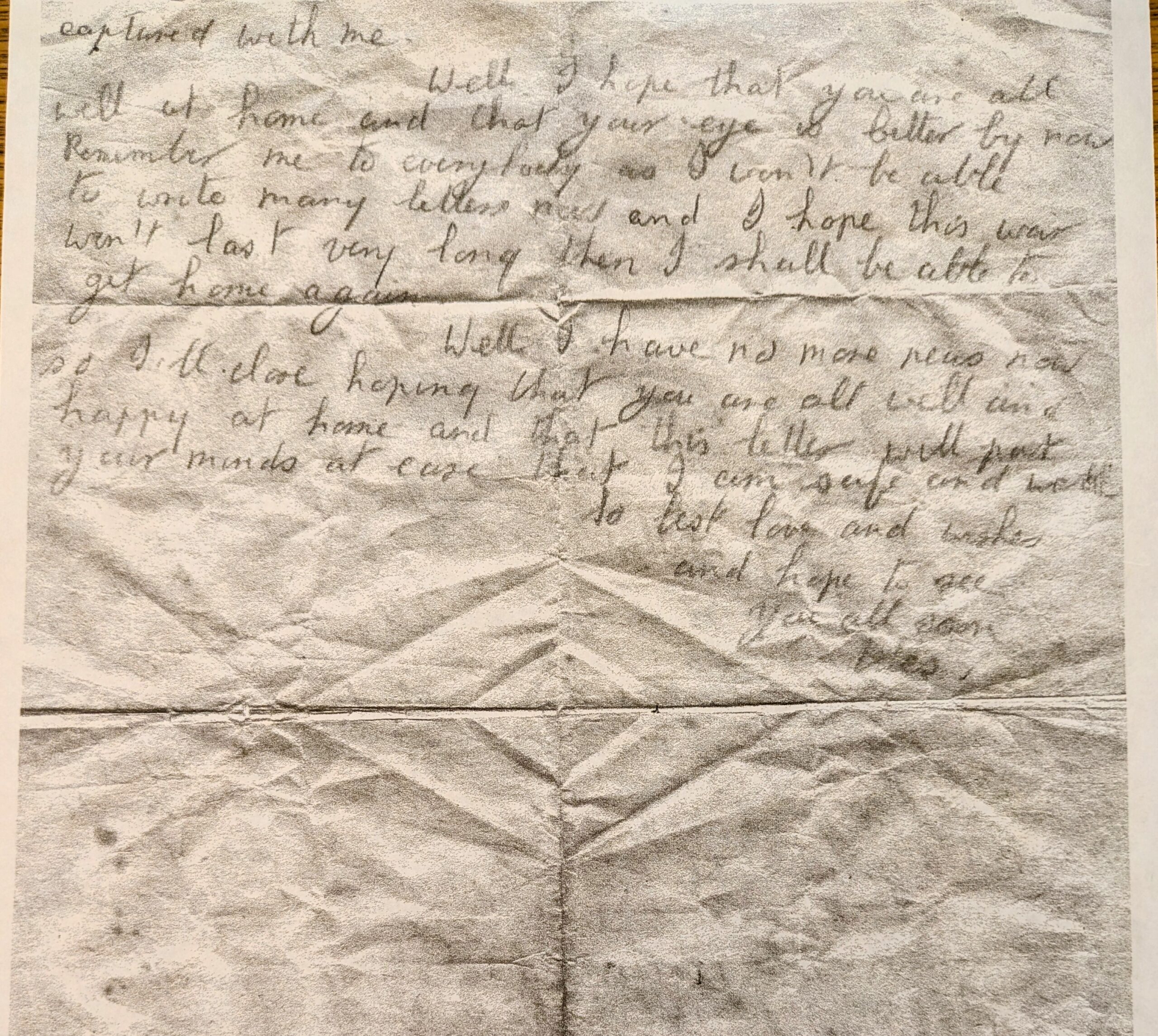 Here is a letter my great grandfather sent to his mother to say he’d been captured, but that he was well. It must have been very hard for his mother not knowing if her son was dead or alive, and she must have been very happy to get this letter from him.